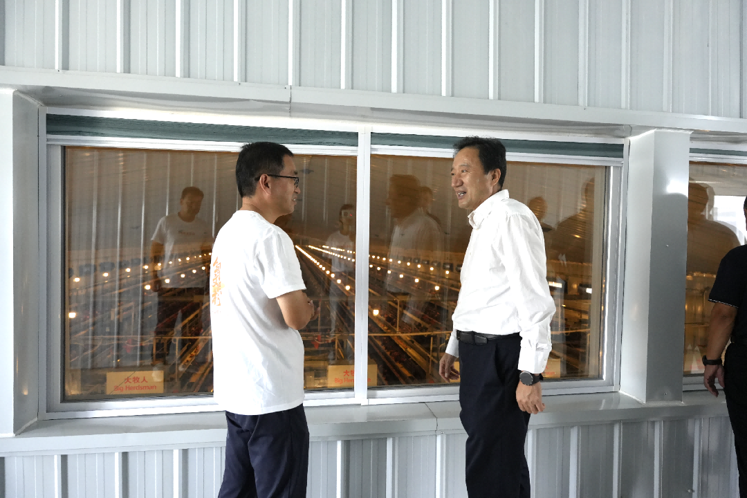 調(diào)研組隨后實地走訪蛋雞養(yǎng)殖舍,朱總介紹道,目前蛋雞存欄量穩(wěn)定在60萬羽,年產(chǎn)蛋量過萬噸,智能化管理大大提高蛋雞成活率,遠超傳統(tǒng)養(yǎng)殖水平。隨后,白書記詢問企業(yè)二期工程進展,并對此表示期待,鼓勵企業(yè)加快建設(shè)進度,早日形成更大產(chǎn)能、發(fā)揮更強帶動作用。他強調(diào),畜牧業(yè)是保障民生供給、推動鄉(xiāng)村產(chǎn)業(yè)振興的重要支柱,易豐農(nóng)業(yè)要持續(xù)發(fā)揮示范引領(lǐng)作用,進一步強化科技支撐,優(yōu)化生產(chǎn)管理,嚴格把控產(chǎn)品質(zhì)量安全,不斷提升產(chǎn)業(yè)競爭力;相關(guān)部門要主動對接企業(yè)需求,做好政策扶持與服務(wù)保障,共同推動全區(qū)畜牧業(yè)高質(zhì)量發(fā)展。