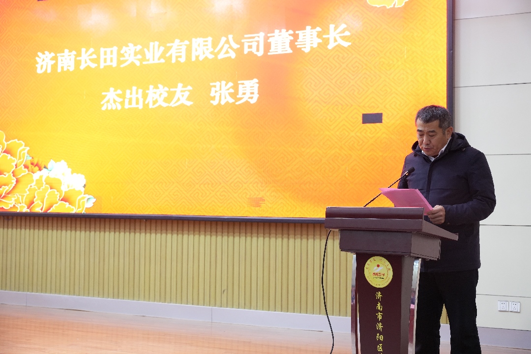 張總作為作為捐資代表講話,他講到,回到母校,就像回到了四十年前的中學(xué)時(shí)光,難忘孫秉鑫、安光茂兩位老校長的諄諄教導(dǎo),感念趙而水、張端奎等老師的悉心培養(yǎng)。更讓他動(dòng)容的是,濟(jì)陽一中承載著家族三代人的情感與寄托,父親曾在此執(zhí)教,兄弟三人追隨父親腳步在此求學(xué),女兒也曾踏入校園,續(xù)寫著與母校的深厚淵源。結(jié)合自身經(jīng)歷,他為學(xué)子們分享了三點(diǎn)成長感悟:一是扎實(shí)根基方能茁壯成長,中學(xué)時(shí)代是積累知識(shí)、錘煉品格、培養(yǎng)韌性的關(guān)鍵時(shí)期;二是懂得感恩方能行穩(wěn)致遠(yuǎn),常懷感恩之心才能明晰方向、凝聚力量;三是胸懷家國方能格局開闊,要將個(gè)人理想融入國家發(fā)展洪流。他勉勵(lì)同學(xué)們傳承母校“永不滿足、追求卓越”的校訓(xùn)精神,讓青春在奮斗中綻放光芒。