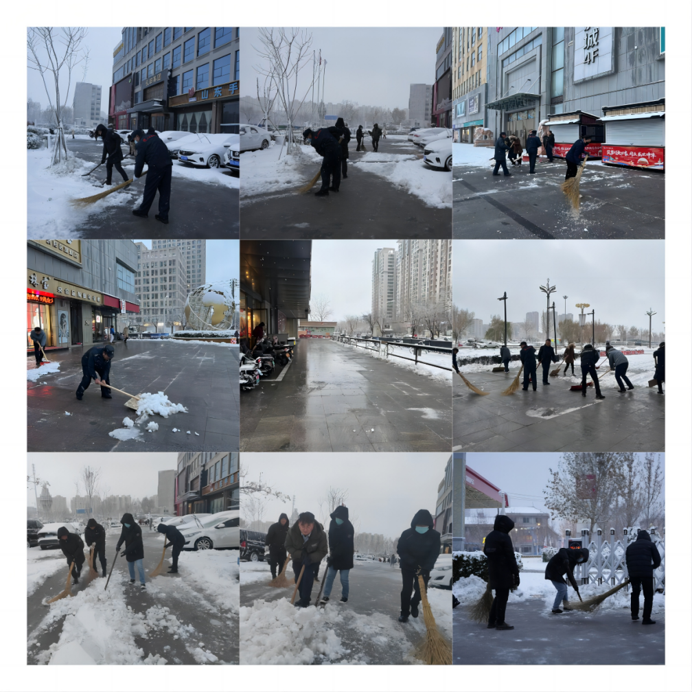 12月14日,寒潮來襲,風(fēng)雪齊至,給城市增添美景的同時(shí),也給市民的出行和道路安全帶來一定的困擾和影響。為維護(hù)良好城市環(huán)境秩序、保障道路交通暢通和市民出行安全,長(zhǎng)田實(shí)業(yè)各部門迅速響應(yīng),以雪為令,聞雪而動(dòng),積極開展掃雪除冰行動(dòng)。