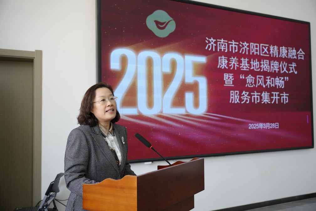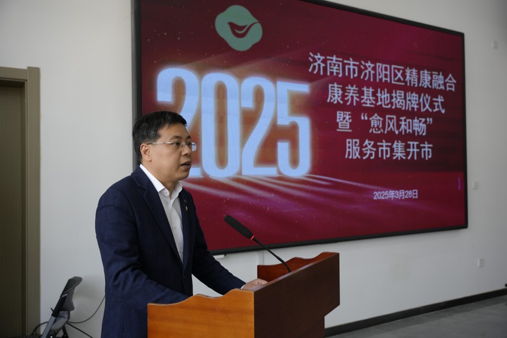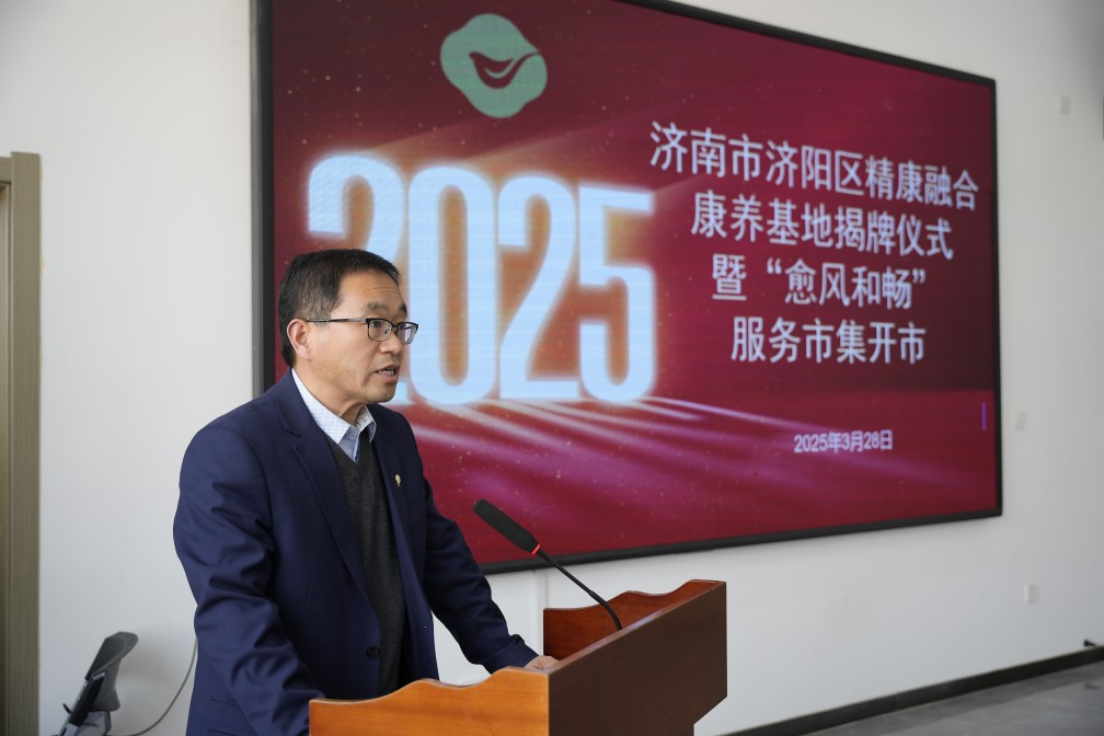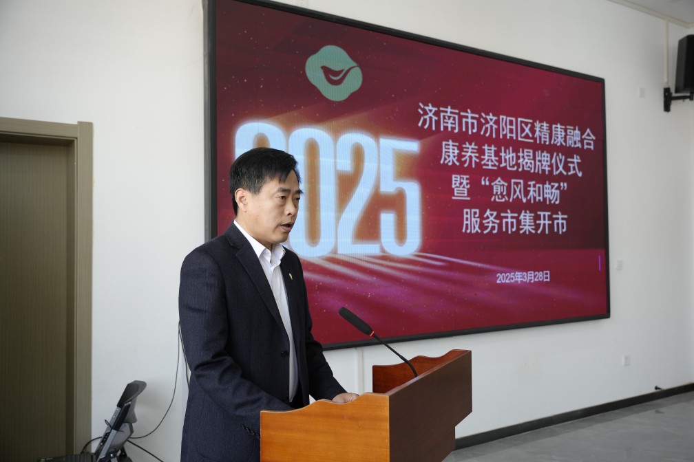 濟(jì)陽(yáng)區(qū)政府黨組成員、副區(qū)長(zhǎng)吳濤發(fā)表致辭。他指出,精神健康是衡量社會(huì)文明進(jìn)步的重要標(biāo)尺,也是實(shí)現(xiàn)共同富裕的必然要求。近年來(lái),濟(jì)陽(yáng)區(qū)高度重視精康融合工作,基本構(gòu)建起“醫(yī)院—社區(qū)—家庭”三級(jí)聯(lián)動(dòng)網(wǎng)絡(luò)。創(chuàng)新提出“醫(yī)療+康養(yǎng)+人文”三位一體發(fā)展理念,致力于讓每位康復(fù)者都能在包容、平等的環(huán)境中,暢享生命歡喜?!坝L(fēng)和暢”康養(yǎng)基地,正是“場(chǎng)景化賦能”服務(wù)理念的生動(dòng)實(shí)踐。社會(huì)化協(xié)同是濟(jì)陽(yáng)區(qū)康復(fù)服務(wù)的一大亮點(diǎn),在與濟(jì)南長(zhǎng)田實(shí)踐教育基地的深度合作中,全面助力康復(fù)者實(shí)現(xiàn)從“輸血”到“造血”的轉(zhuǎn)變。特別是基地首創(chuàng)的“家庭支持中心”,將為家屬提供心理疏導(dǎo)、照護(hù)技能培訓(xùn)及喘息服務(wù)。精神健康事業(yè)沒有“完成時(shí)”,只有“進(jìn)行時(shí)”。下一步,濟(jì)陽(yáng)區(qū)委區(qū)政府將重點(diǎn)在擴(kuò)大服務(wù)覆蓋、深化數(shù)字賦能、強(qiáng)化社會(huì)動(dòng)員等方面形成關(guān)愛合力。