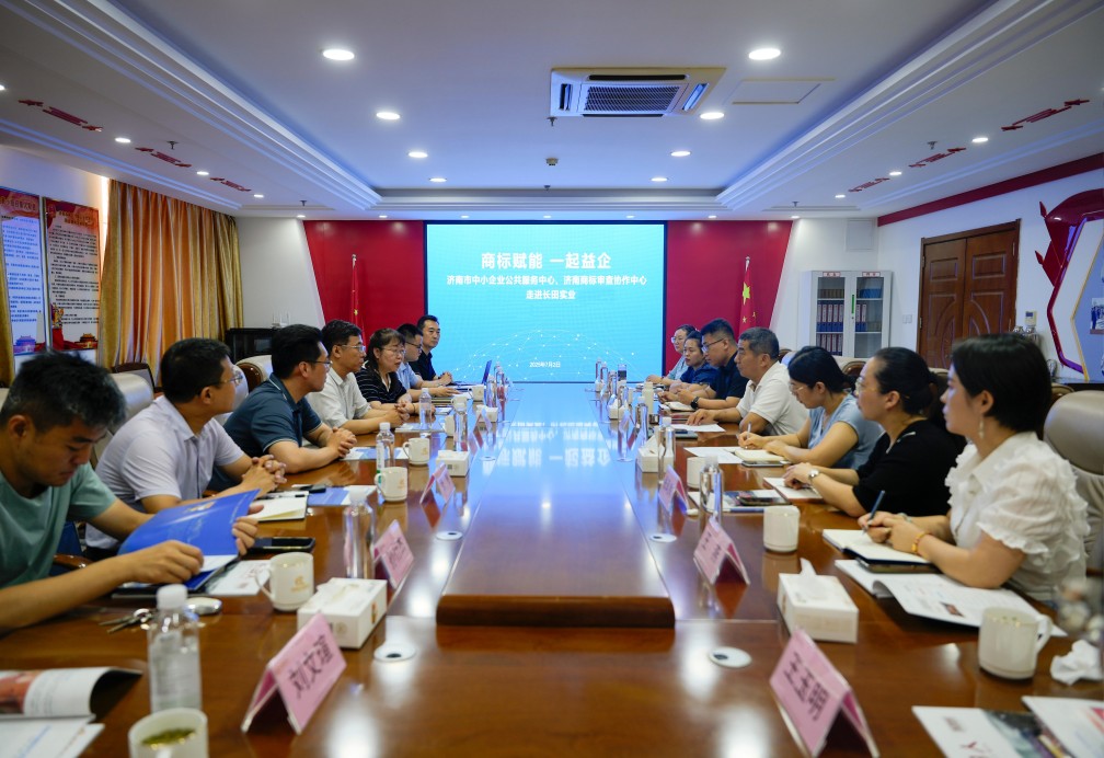 7月2日上午,濟(jì)南市中小企業(yè)公共服務(wù)中心、濟(jì)南商標(biāo)審查協(xié)作中心走進(jìn)長(zhǎng)田實(shí)業(yè)舉辦“商標(biāo)賦能 一起益企”公益咨詢服務(wù)活動(dòng),旨在提供專業(yè)的商標(biāo)知識(shí)指導(dǎo)與精準(zhǔn)的咨詢服務(wù),助力企業(yè)提升商標(biāo)品牌意識(shí),增強(qiáng)商標(biāo)運(yùn)用與保護(hù)能力。山東省市場(chǎng)監(jiān)督管理局知識(shí)產(chǎn)權(quán)促進(jìn)處二級(jí)調(diào)研員王華偉、濟(jì)南市中小企業(yè)公共服務(wù)中心專職副書記陳炳亮、濟(jì)南商標(biāo)審查協(xié)作中心副主任宮衛(wèi)清等領(lǐng)導(dǎo)出席活動(dòng)。長(zhǎng)田實(shí)業(yè)黨支部書記、董事長(zhǎng)張勇參加活動(dòng)。同時(shí),張總作為濟(jì)北街道商會(huì)會(huì)長(zhǎng)還組織了濟(jì)北街道商會(huì)的會(huì)員單位前來(lái)交流學(xué)習(xí)。